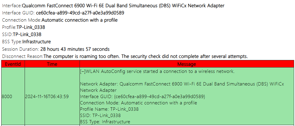 ? Genera un informe HTML con eventos y conexiones inalámbricas.